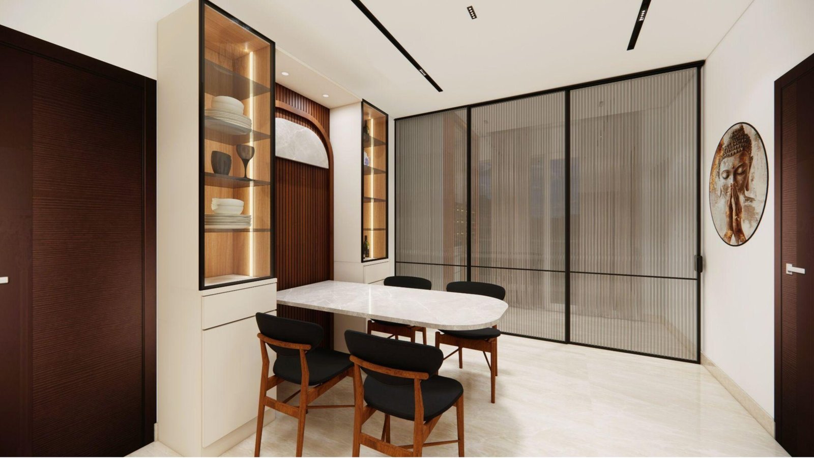 The living and dining spaces feature custom-crafted furniture, decorative wall treatments, layered lighting, and premium finishes that enhance both aesthetics and functionality. Bedrooms are designed as calm retreats with optimized storage, stylish wardrobes, and accent walls that add character without overwhelming the space.